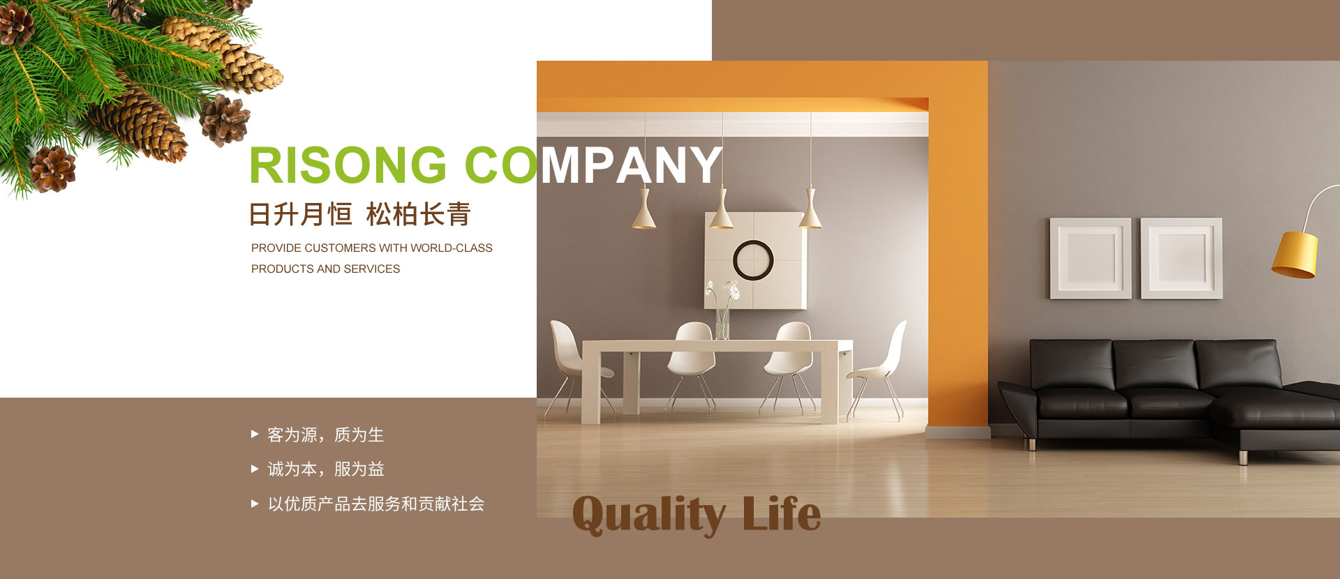 大連日松將一直秉承“以優(yōu)質(zhì)產(chǎn)品去服務(wù)和貢獻(xiàn)社會(huì)”的經(jīng)營(yíng)宗旨;“客為源,質(zhì)為生、誠(chéng)為本、服為益”的經(jīng)營(yíng)理念;達(dá)到“使用者、銷售者、制造者”三者并存共榮之經(jīng)營(yíng)思路;全體日松人將以“熱情、禮貌、快捷、準(zhǔn)確”的行動(dòng)指南,不懈努力的為每一位客戶,提供行業(yè)內(nèi)一流的高端、環(huán)保、舒適、健康的產(chǎn)品和細(xì)節(jié)服務(wù),打造出適合“您”的優(yōu)質(zhì)家居住宅環(huán)境。